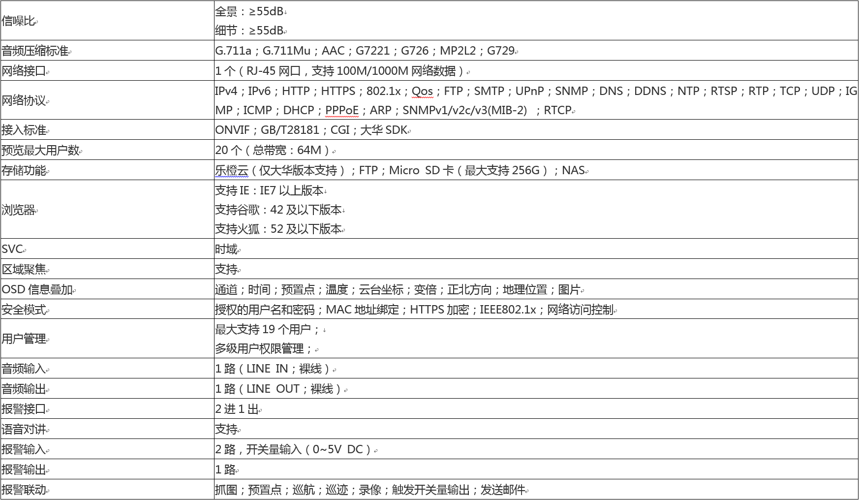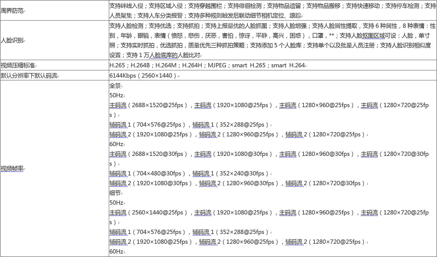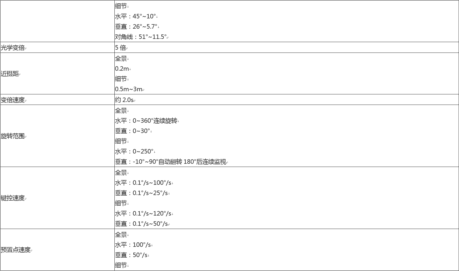 内置GPU芯片,支持深度学习算法,有效提升检测准确率 支持视频结构化功能:支持机动车抓拍、机动车属性提取,支持非机动车抓拍、非机动车属性提取,支持人体抓拍、人体属性提取,支持人脸抓拍、人脸属性提取,支持机非人数量统计,搜索报表(球机) 支持人脸检测;支持人脸优选抓拍;支持人脸增强;支持人脸属性提取;支持7种属性5种表情:性别,年龄,眼镜,表情,口罩,;支持多种人脸抠图方案设置:单寸照,人脸;支持人脸识别(前端支持导入1万张人脸库) 支持绊线入侵、区域入侵、穿越围栏、徘徊、物品遗留、物品搬移、快速移动、停车、人员聚集检测;支持人车分类报警;支持联动跟踪 枪球一体化设计,兼顾全景与细节,达到单个产品既能看全也能看清的优势 支持双云台,设备具备全景、细节两个通道且都支持远程转动调节位置,灵活布控 细节相机支持5倍光学变倍,16倍数字变倍 全景细节都采用400万像素1/1.8英寸CMOS传感器 支持超星光级超低照度。全景相机:0.0005Lux/F1.0(彩色),0.0005Lux/F1.0(黑白);细节相机:0.001Lux/F1.35(彩色),0.0001Lux/F1.35(黑白) 支持H.265编码,实现超低码流传输 全景相机内置30米白光灯补光,采用暖色调和柔化处理,有效降低炫目程度;细节相机内置100米红外灯补光,采用倍率与红外灯功率匹配算法,补光效果更均匀 全景相机:水平范围:0°~360°连续旋转、垂直范围:0°~30° 细节相机:水平范围:0°~250°,垂直范围:-10°~90 支持300个预置位,8条巡航路径,5条巡迹路径 支持1路音频输入和1路音频输出 内置2路报警输入和1路报警输出,支持报警联动功能 支持IP67防护等级,8000V防雷、防浪涌和防突波保护 支持AC24V±25%宽电压输入